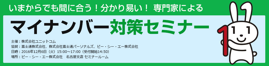「いまからでも間に合う!マイナンバー対策セミナー」名古屋開催のお知らせ。 2016年12月6日(火)