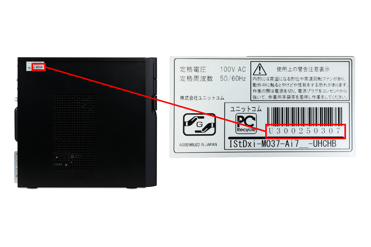 ケースの種類により、シリアルの記載されたシールが背面や上面に貼られている場合もございます。