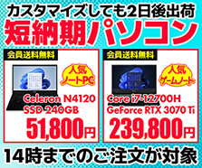 対象製品のBTOパソコンを表示納期より短縮してお届けできるサービスです。