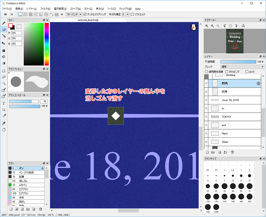 ここまでの作業でもかなりウェルカムボードらしくなってきましたが、一つのテクニックとして、2人だけのオリジナルロゴマークを作成すると画面構成にもまとまりが出て、他のアイテムをデザインした時にも統一感を出しやすくなります。