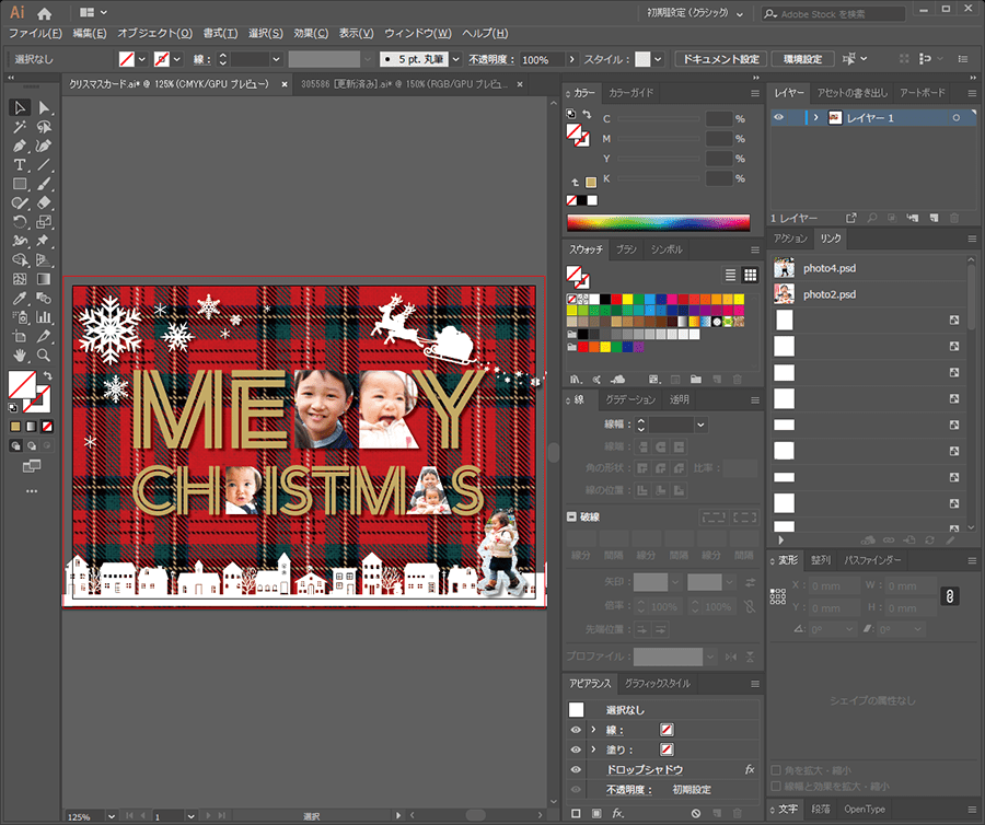 今回は子供の写真を可愛らしく入れたデザインの、楽しいオリジナルクリスマスカードを作成していきたいと思います!
