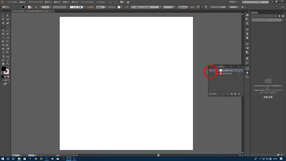 新しいレイヤーを作成する、またストライプのレイヤーを不可視にしておく
