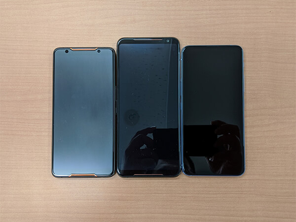 ASUS ROG Phone 2とROG Phone、ZenFone6外観比較(正面)