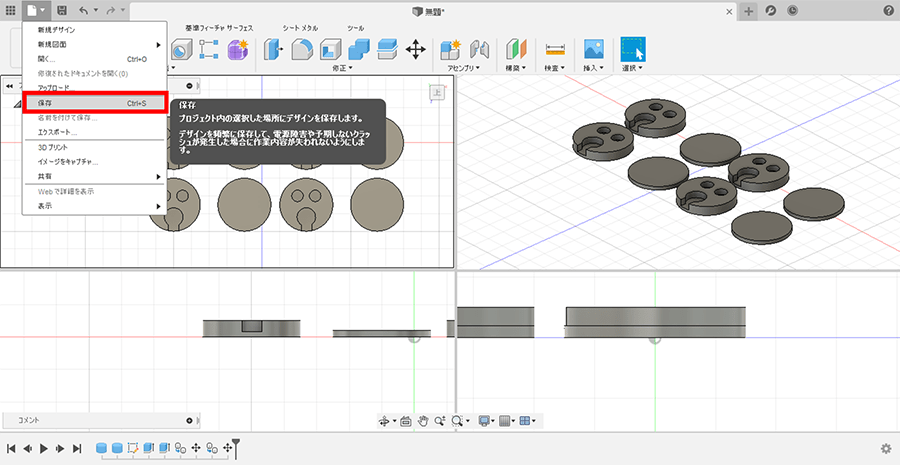 「保存」し、「STL」で書き出しを行いましょう。