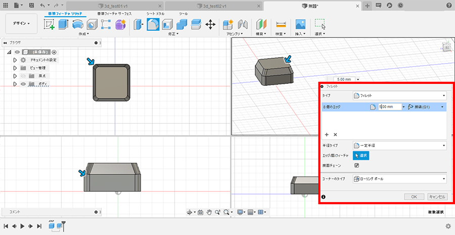 8個のエッジが選択できたら、半径を「5mm」にします。