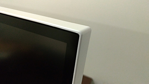 4辺スリムベゼルのフレームレスデザインとなっています。非表示領域は8mmでした。34型ウルトラワイドの大きなモニタではありますが、本体カラーのホワイトと相まって圧迫感のないとてもスッキリとした印象を受けます。