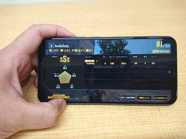 ZenFone 5のゲーム性能を確認するため、モバイル版「PLAYERUNKNOWN’S BATTLEGROUNDS」をインストールして遊んでみました。