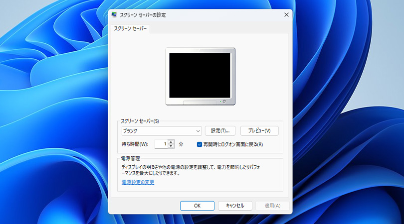 作業中に席を離れる時、スクリーンセーバーの設定をしておくことで、誰かに画面を見られてしまうという心配がなくなります。さらに再開時にログオン画面を表示させることで、他の人が操作することを防止することができます。ぜひスクリーンセーバーの設定をしてみてください。