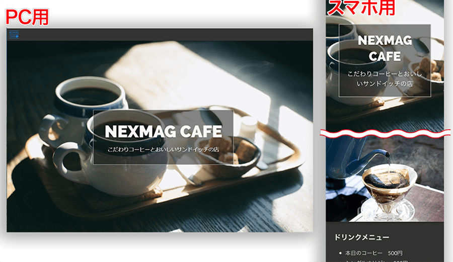 事前にWebページに載せたい内容を決め、材料を用意します。今回はカフェのホームページを想定して、下記のような内容を掲載します。