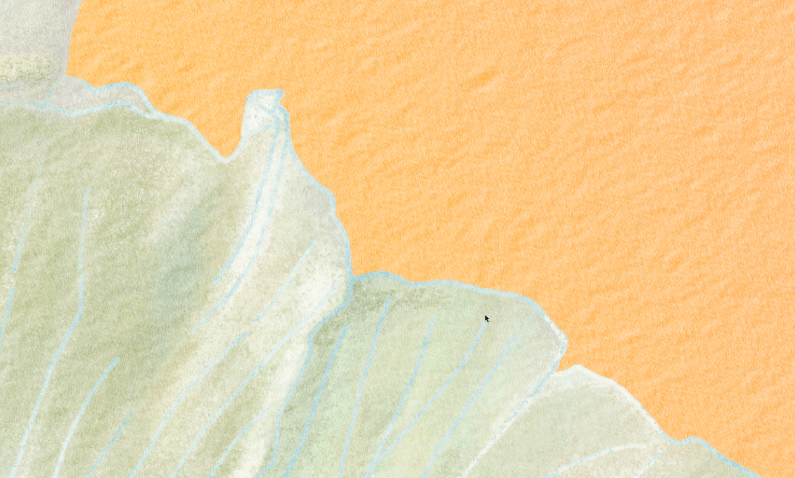 日本画は「岩絵具」で描かれるので、全体に砂を撒いたようなざらつきを演出するためにフィルターを使って処理していきます。今回はそれに加えて、背景画像だけ別のテクスチャーを与えることにします。