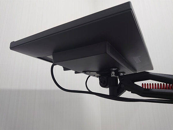 本製品にはスプリングメカニズムが採用されており、ガス充填式のものと比べて物理的なスプリングとなるため、ガス圧が弱まって液晶モニターを支える力が弱まるといったことがありません。