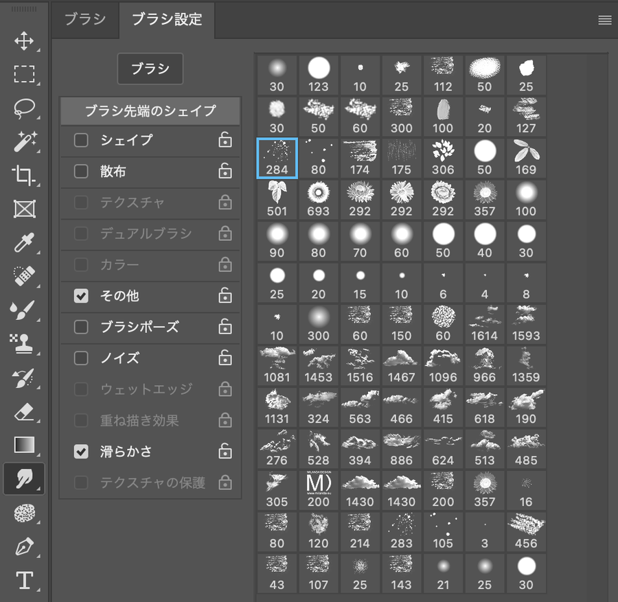 「HAL_の印象派.abr」をダウンロード後ダブルクリックすると、自動的にPhotoshopにクリムト描画用のブラシセットが実装されます。