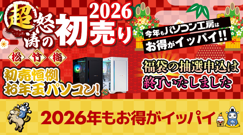 パソコン工房インターネット通販の2026年初売り限定 初夢福袋は抽選受付を終了いたしました。多数のご応募ありがとうございます。