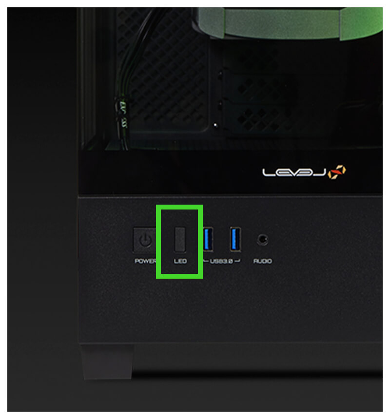 側面に最大2基、天面と背面に合計4基、最大6基のLEDファンを搭載し、PC本体のフロントボタンからLEDライトの切り替え、光を抑えたナイトライトモードにも変更可能です。