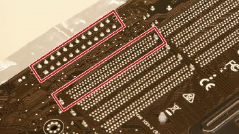 ピンヘッダの中には5Vの電圧が流れているピンがあります。特にUSB2.0のピンヘッダはコネクタが1つずれてしまっていることをよく見受けます。この状態で電源を入れると、電気的にショートし、焼損が発生する恐れがあります。