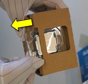 化粧箱から“CPU”と“CPUクーラー”を取り出します。CPUは箱の上面、出っ張りから引き出せば取れます。