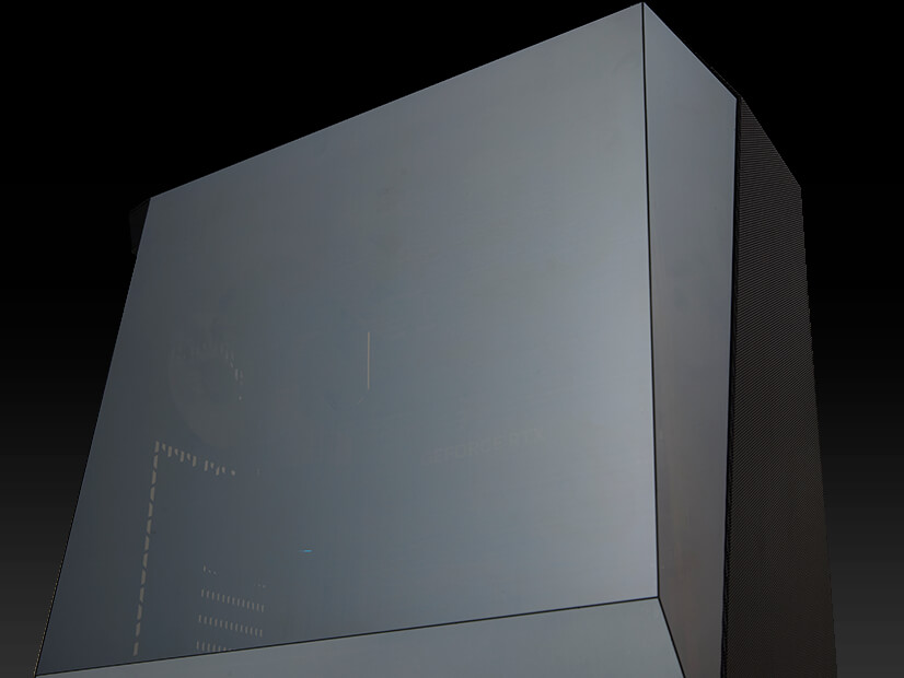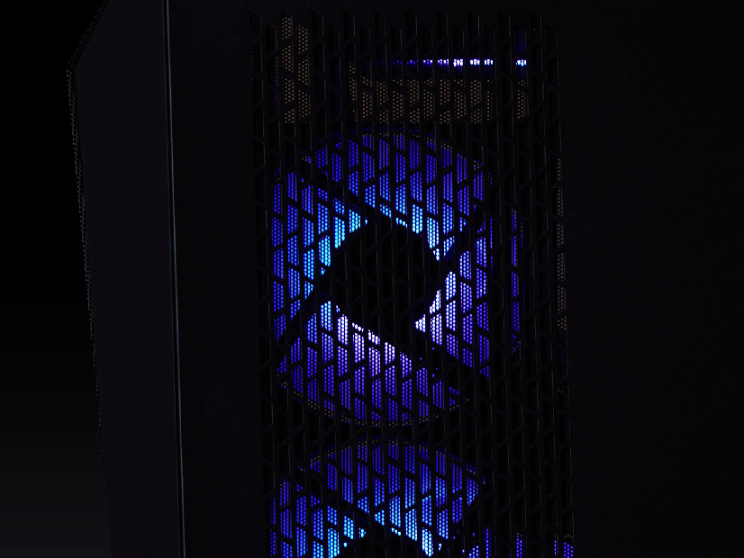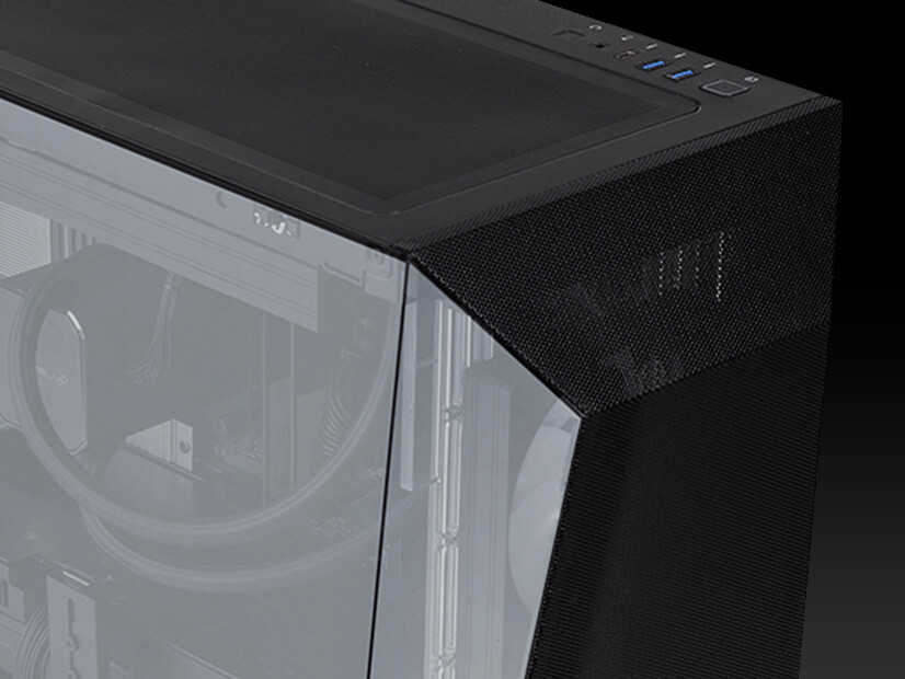 さらにフロントと右サイドパネルに配置されたメッシュ構造の通気口がエアフローを高め、ピラーレスの視覚的インパクトと、冷却性能の両立を実現します。