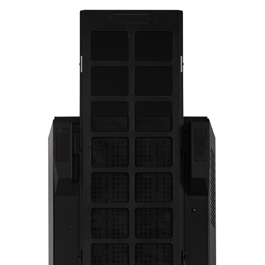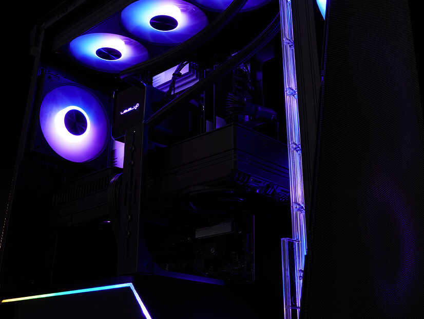 10基のケースファンを備えた大型筐体が、優れたエアフローを生み出し、内部の高性能のパーツの高い発熱も効率的に冷却します。