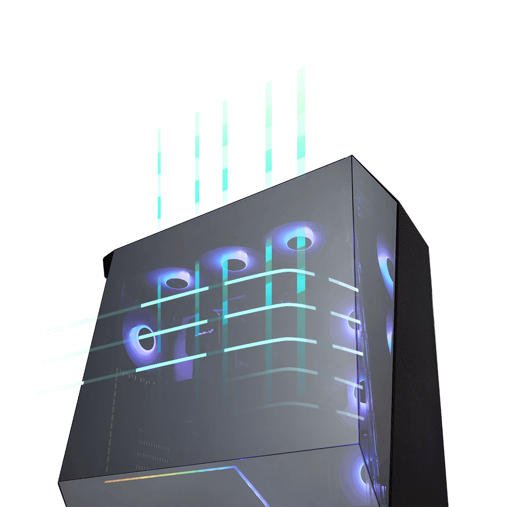 優れたエアフローによる冷却で、最新のハイエンドパーツにも対応、安定したパフォーマンスを発揮することができ、長時間のゲームプレイでも快適な動作を維持、プレイヤーを勝利へと導きます。