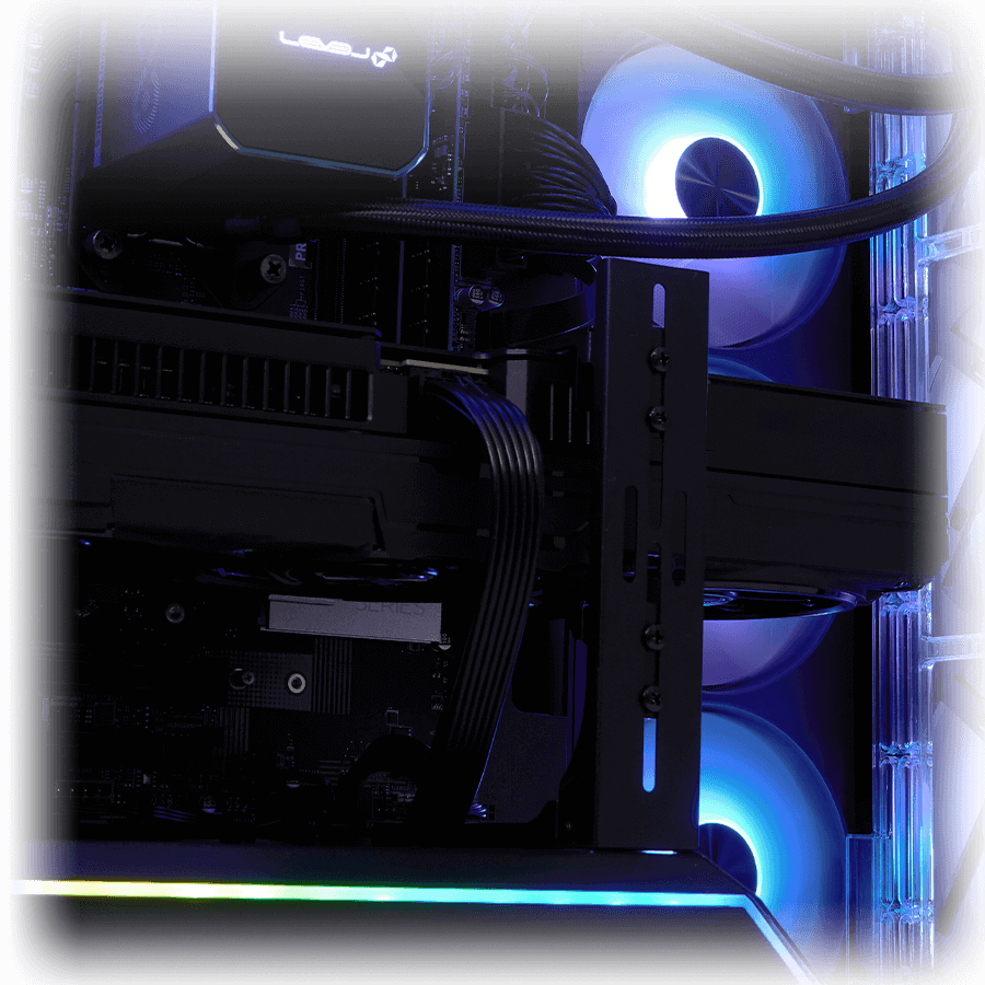 さらに、最大435mmまでのグラフィックスカードに加え、グラフィックスカードホルダーにも対応しているため、大型、重量級のグラフィックスカードも安心して使用できます。