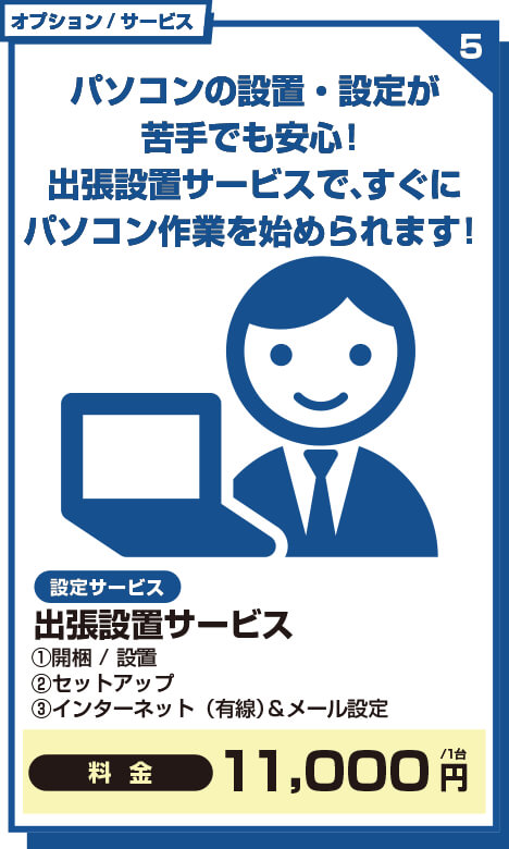 面倒な初期設定やキッティング作業にも対応で受け取った瞬間から業務に集中できる環境をご提供します。