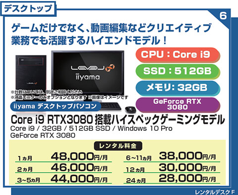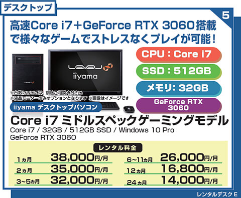 また、カタログに掲載のないスペックのレンタル品も用意することが可能です。ご要望に応じてCPUやVGAを選択することも出来ます。