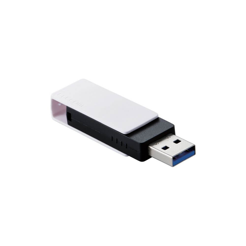 ■回転式コネクターカバー筐体にスライドロック機構を搭載。使い勝手のよいUSBメモリです。