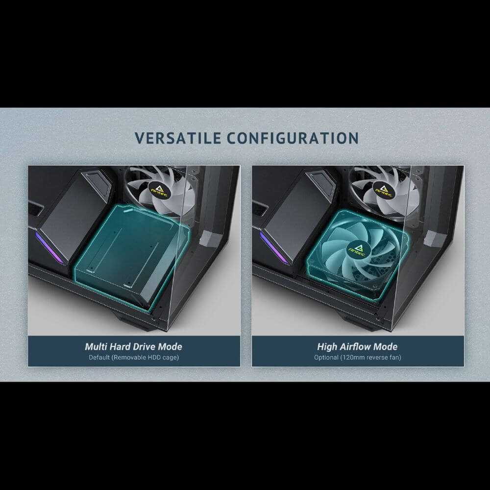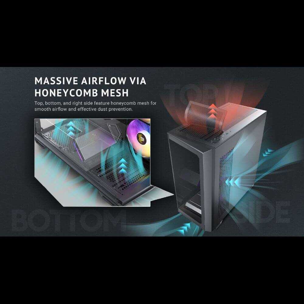 - 側面:120 mm ARGB PWM FAN(逆回転)×3