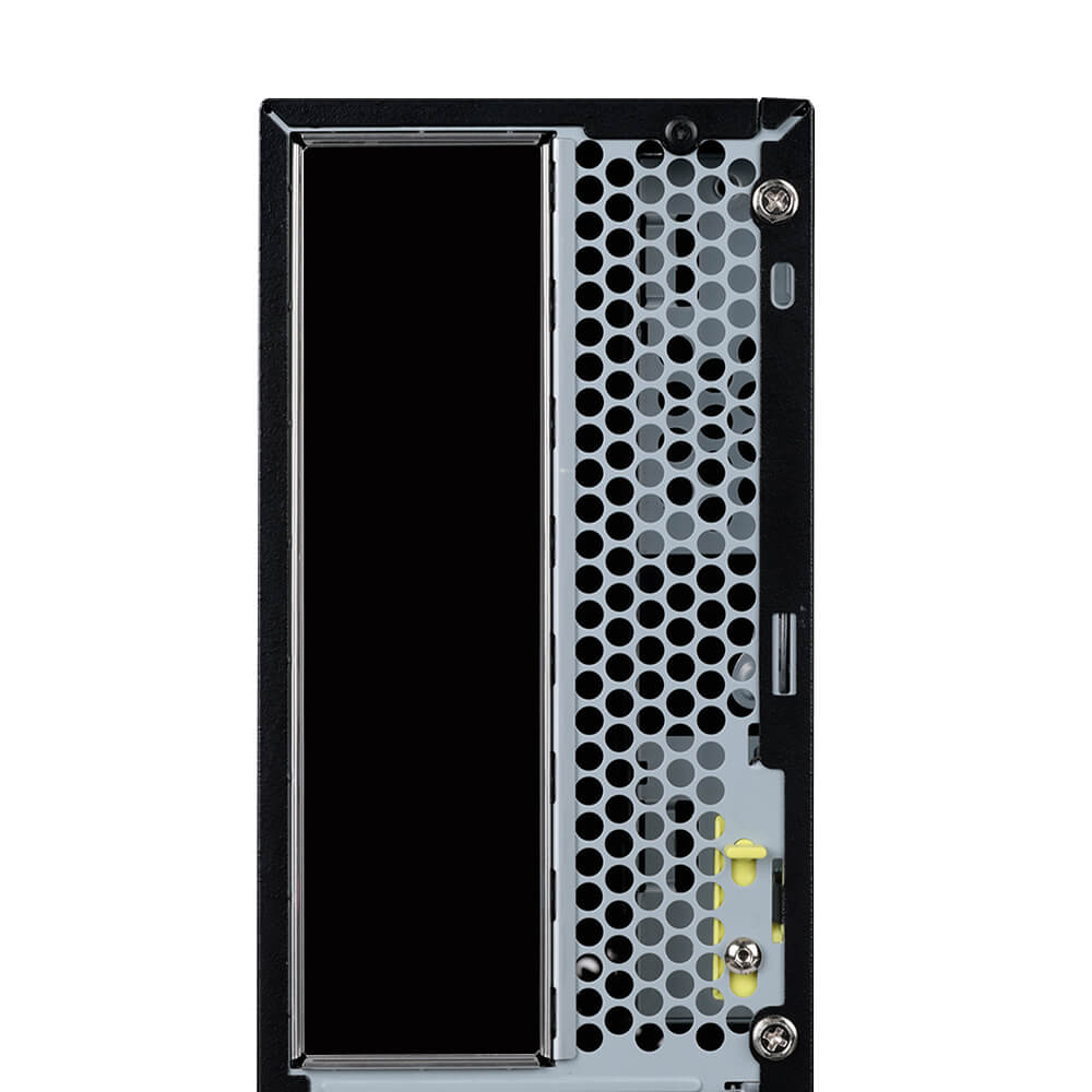 幅95mm×奥行283mm×高さ326mm(※最大突起物除く)のスリムケースはデスクスペースを有効活用できる省スペースデザインです。縦置き、横置きの両方に対応し、ご使用環境やライフスタイルに合わせて最適な設置が可能です。