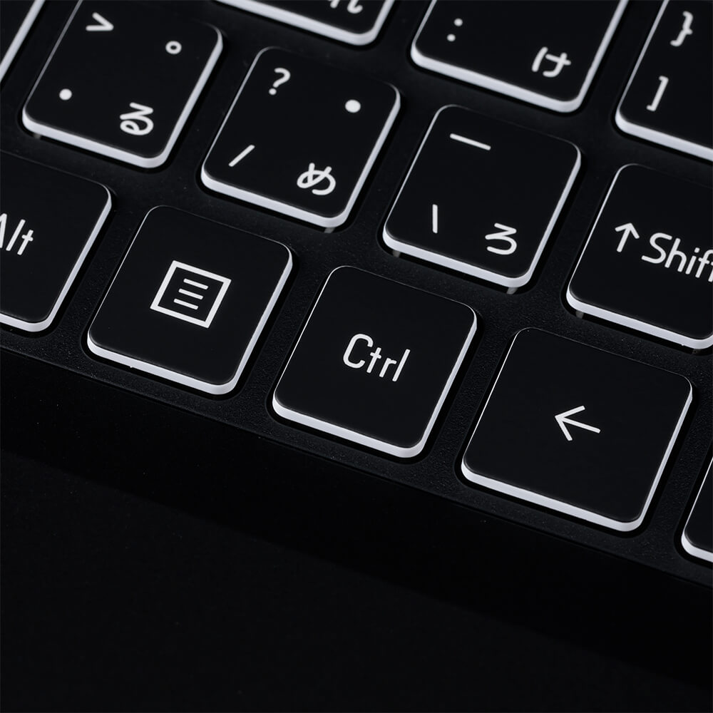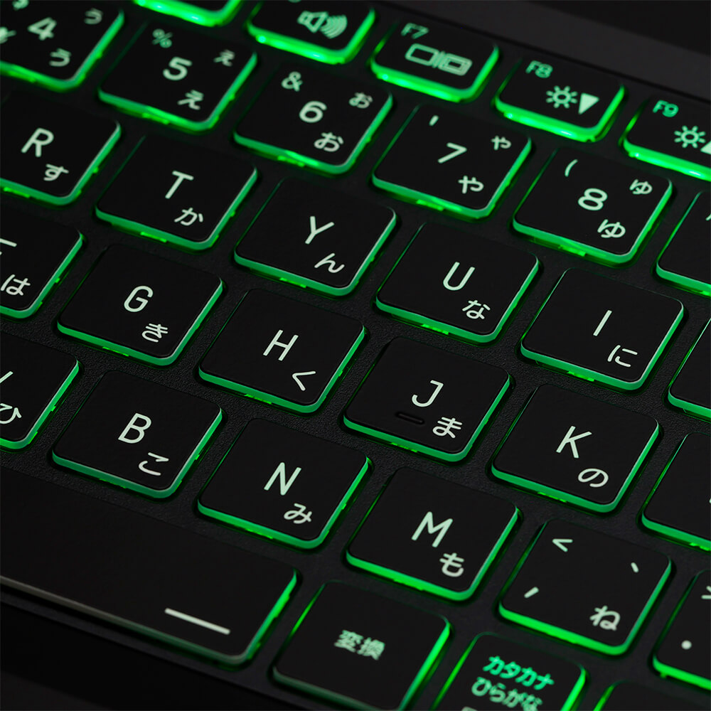 専用ユーティリティソフトから発光色や発光パターンが変更可能なマルチカラーLEDのキーボードを搭載しています。白熱するゲーミング使用時には手元を華麗に演出したり、暗所での作業時にはキートップを確認しやすくなるなど、実用的な機能となっています。
