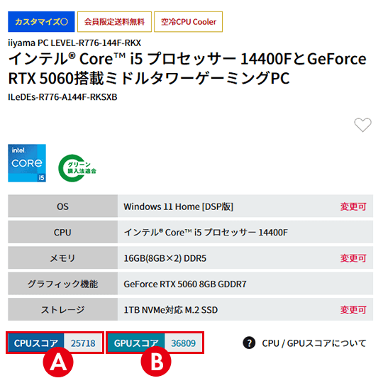 数値が大きいほど性能が高くなります。 - GPUスコア
