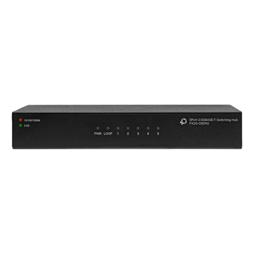 「FX2G-05EM2」は、マルチギガビットLANの発熱に対応する両面放熱方式を採用した5ポート 2.5GBASE-T スイッチングハブです。新チップを採用し従来機に比べ低消費電力、低発熱を実現しました。