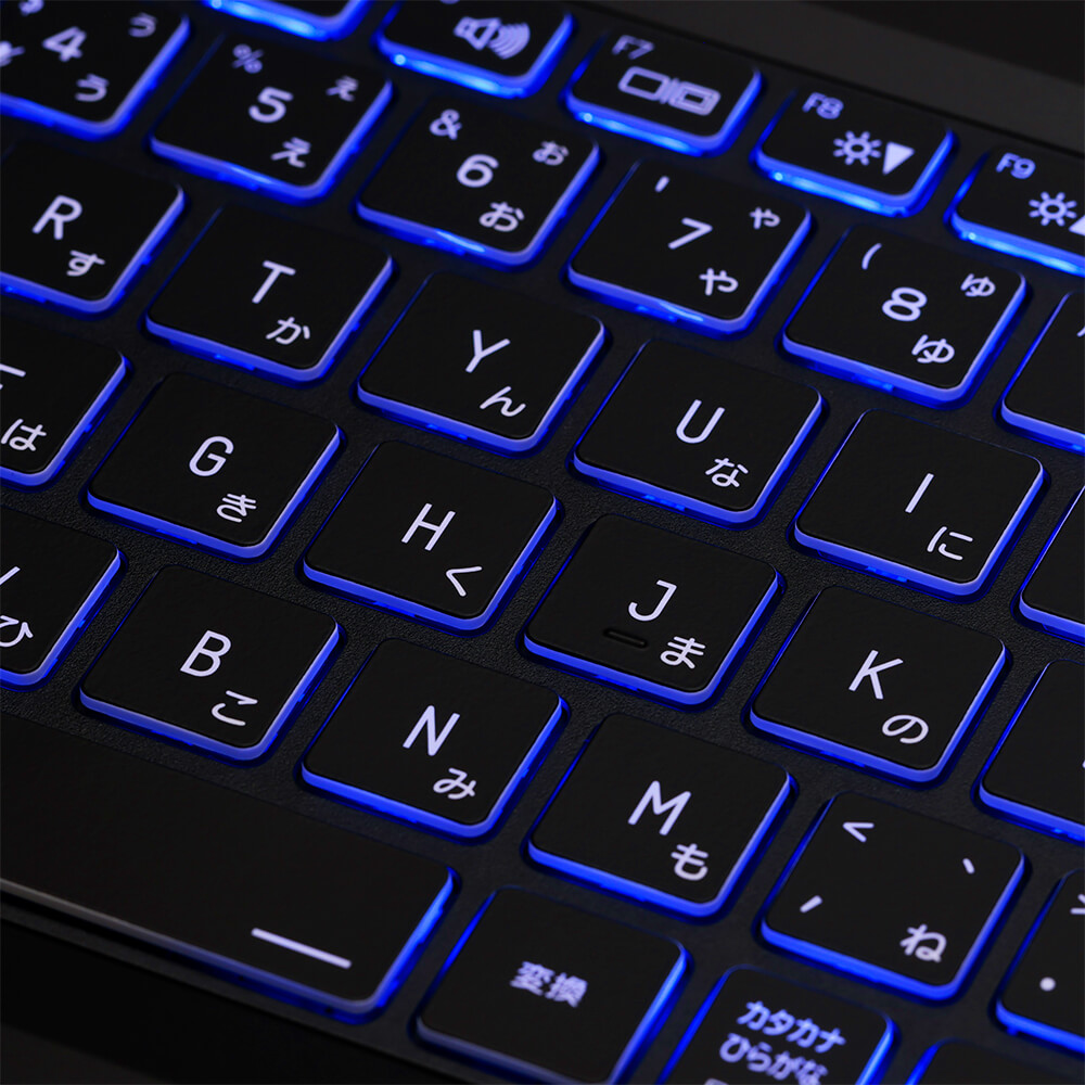 専用ユーティリティソフトから発光色や発光パターンが変更可能なマルチカラーLEDのキーボードを搭載しています。白熱するゲーミング使用時には手元を華麗に演出したり、暗所での作業時にはキートップを確認しやすくなるなど、実用的な機能となっています。
