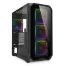 Sharkoon社のSHA-AK5G-RGBは、最新の大型グラフィックスカードや大型ラジエーターといったパワフルなハイエンドハードウェアに対応したATXケースです。フロント3基+リア1基のARGBファンを標準搭載しているだけでなく、内部に余裕を持たせた設計になっており、最大11基のファンまたは2基の360mmラジエーターを搭載可能です。また市場に出回っているほぼすべてのBTFフォーマットにも対応しています。フロントパネルは強化ガラスパネルとなっており、フロントの3層イルミネーションになっている独自ファンを強調し目立たせる構造となっております。