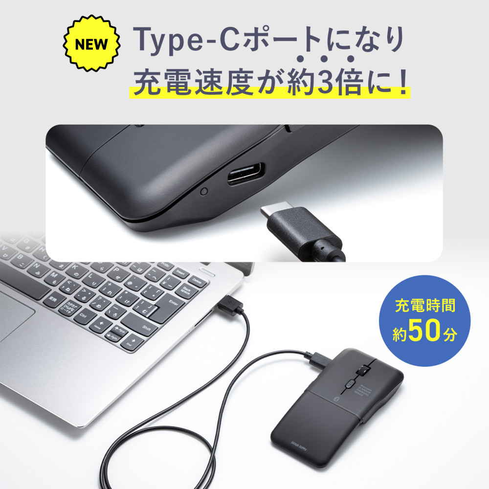 - ■電池:充電池 ■充電ポート:USB Type-C ■マルチペアリング:あり ■連続動作時間:60時間 ■連続待機時間:6000時間 ■セット内容:マウス、充電用ケーブル、収納ポーチ、取扱説明書・保証書 ■付属ケーブル長:0.75m 充電用ケーブル