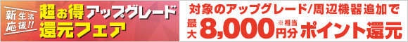 【新生活応援!!超お得アップグレード還元フェア 対象】最大8,000円分相当還元 2026/3/4(水)10:59まで!