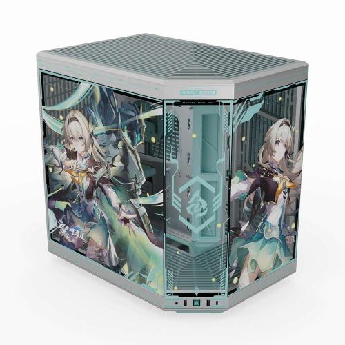 Y70 Firefly Limited Editionは、『崩壊:スターレイル』とHYTEのコラボレーションで誕生した、ピラーレス式パノラマ強化ガラスを搭載したハイエンドのミドルタワーPCケースです。独自のピラーレス式パノラマガラス全面に加え、右サイドパネルや電源ボタンなどケースの各所に「ホタル」のイラストやアイコンをあしらい、背面にはシリアルナンバー刻印を施したプレートを搭載。グラフィックカードのイルミネーションを最大限活用できる垂直搭載用のライザーケーブルも付属し、お好みのPCパーツやイルミネーションと組み合わせることで、世界で一つだけのPCを作ることができます。本製品限定のオリジナルアクリルキーチェーンが付属。