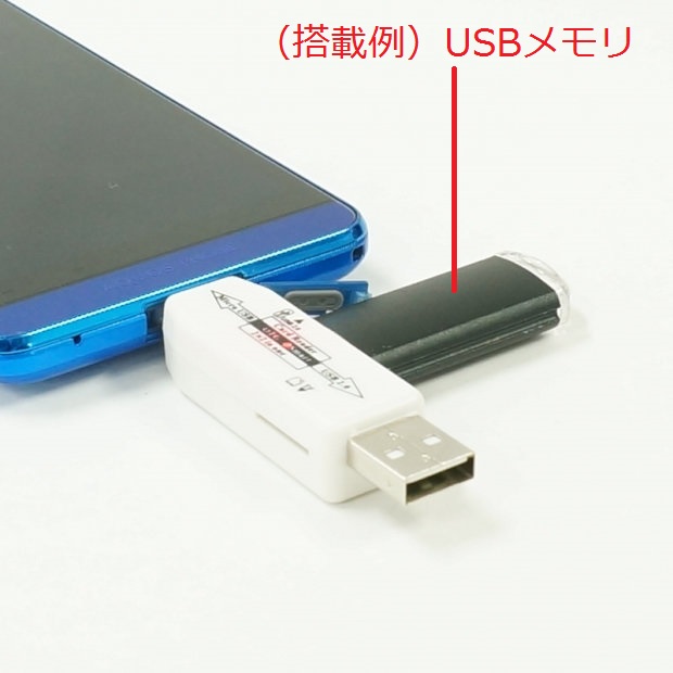 - ※USBポートとカードリーダーは排他利用となります。※【パソコン - 本機 - スマホ】の接続はできません。※相性についての保証はございませんので、御了承ください。