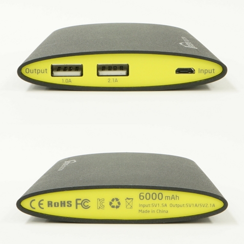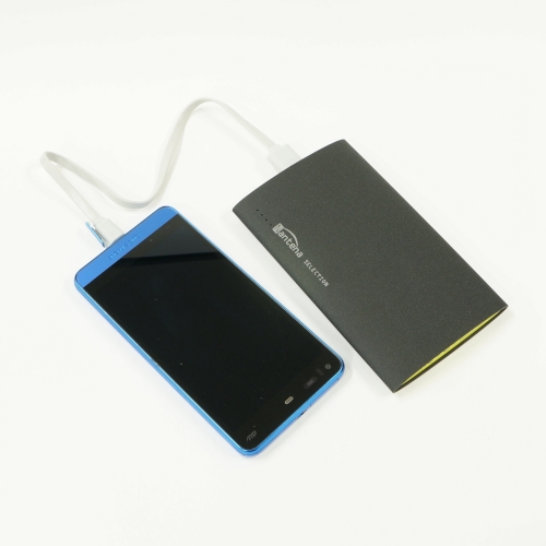 出力端子5V/1Aと5V/2.1Aの2つのUSBコネクターを装備した高品質なリチウムポリマー電池(6000mAh)を採用しました。