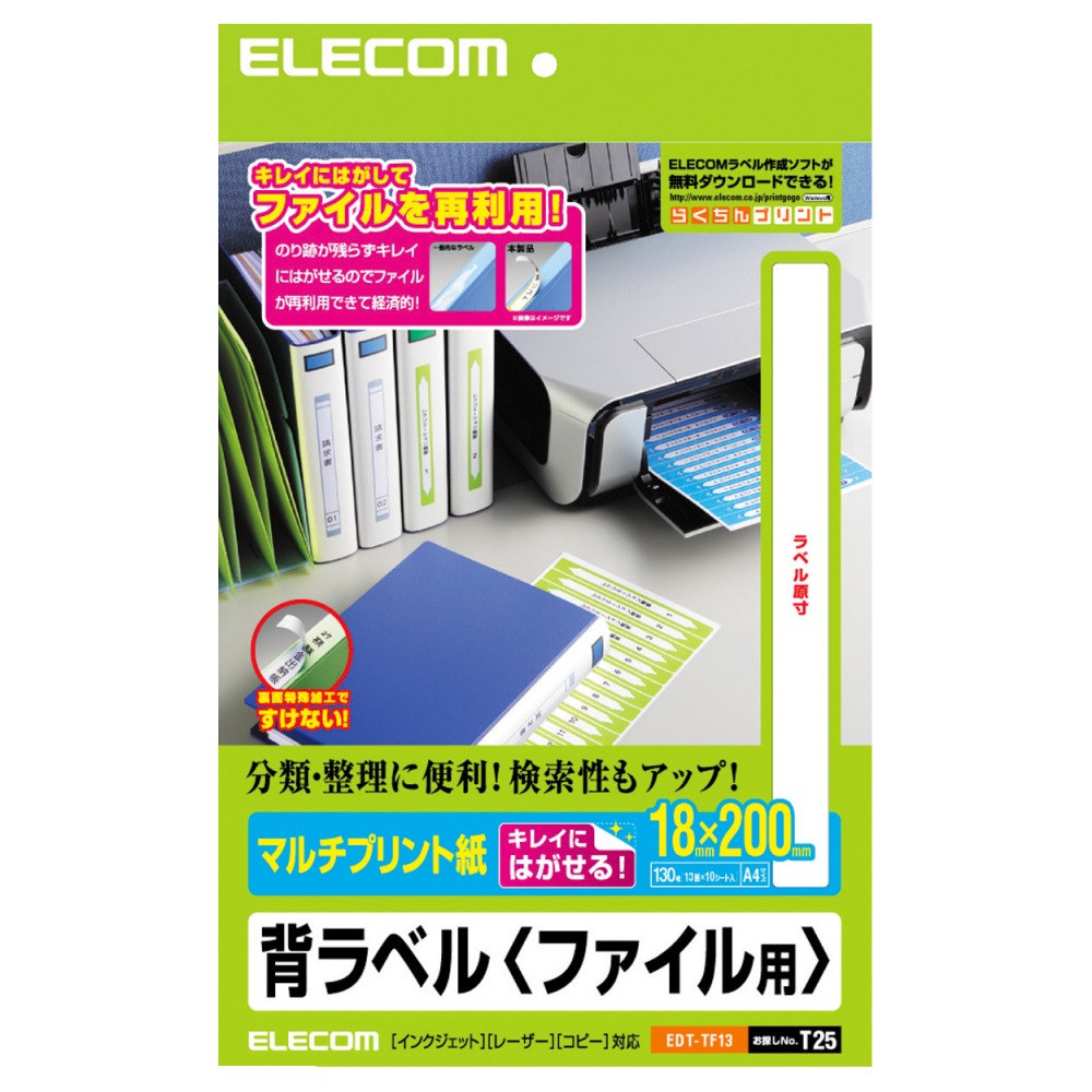 背ラベル/A4/ファイル用/13面付/18ミリ幅