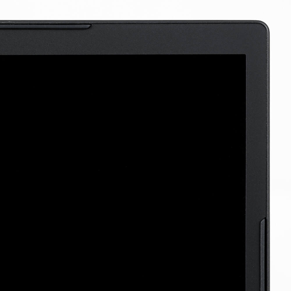 ベゼル幅5.7mmのスリムベゼル14型液晶パネルを採用しています。液晶パネルは180度開閉可能で、フルフラットな状態にして使用することができるため、ミーティングや商談など、対面の相手と画面を共有するシーンで有効です。