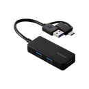 USB ハブ USB3.1 Gen1 USB-Aコネクタ Type-C 変換アダプター付 USB-Aポート ×3 バスパワー コンパクト 【 Windows 11 / 10 Mac PC MacBook Surface Chromebook PS5 PS4 他対応 】 ケーブル長10cm ブラック