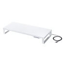 モニター台 ラック 卓上 スタンド 机上台 USBポート付き USB3.0 Gen1 4ポート 安定性 パソコン pc キーボード収納 プリンタ 液晶モニター台 幅60cm 耐荷重10kg 省スペース 整理整頓 ホワイト MR-LC215W