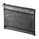 ポーチメッシュポケット付き小物入れナイロン軽量出張トラベルブラック295×10×225mmIN-MS4BK