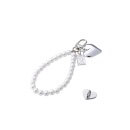 スマホチャーム パールビーズ ストラップ 強力粘着 ハート型チャームホルダー付 落下防止 スマホケース用 おしゃれ ホワイト