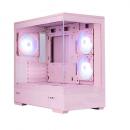 Micro-ATXに対応したピラーレスデザインのミニタワー型PCケース(ピンクカラー)です。ARGBファン搭載により冷却性能を最大化し、直感的なケーブル管理機能で内部を美しく整理できます。