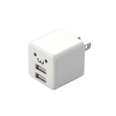 AC充電器/スマホ・タブレット用/2.4A出力/USB-Aメス2ポート/おまかせ充電搭載/キューブ型/ホワイトフェイス