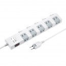 電源タップ 雷ガード マグネット 10個口 5m 一括スイッチ 個別スイッチ 折りたたみ式プラグ ACアダプタ対応 ブレーカー内蔵 固定穴 絶縁キャップ付き 2ピン ホワイト TAP-SP2110SW-5