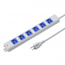 電源タップ マグネット 6個口 3m 3ピン 抜け止め 青色コンセント 通電確認ランプ 絶縁キャップ付き アース端子 固定穴 無鉛はんだ グレー 病院 工場 オフィス 電源管理がしやすい 簡易ビニールパッケージ TAP-K6-3BL