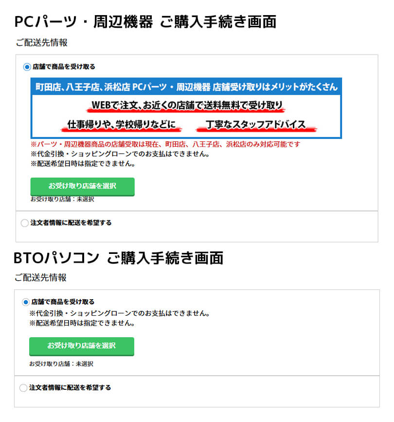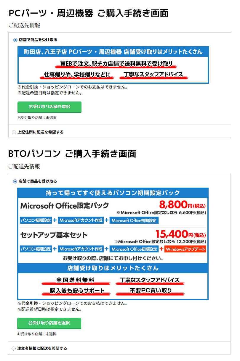 BTOパソコン・PCパーツ・周辺機器の店舗受け取りサービスご利用方法